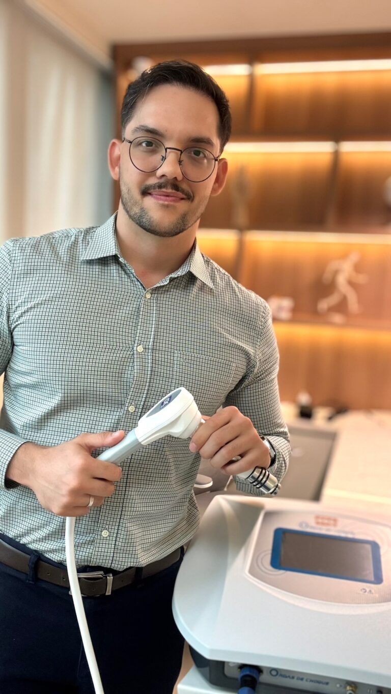 A Terapia de Ondas de Choque Radial é um tratamento não invasivo que utiliza ondas acústicas de alta energia para estimular a regeneração tecidual e reduzir a dor. Indicada para tendinites, fascite plantar, calcificações, trigger points musculares e dores crônicas na coluna.